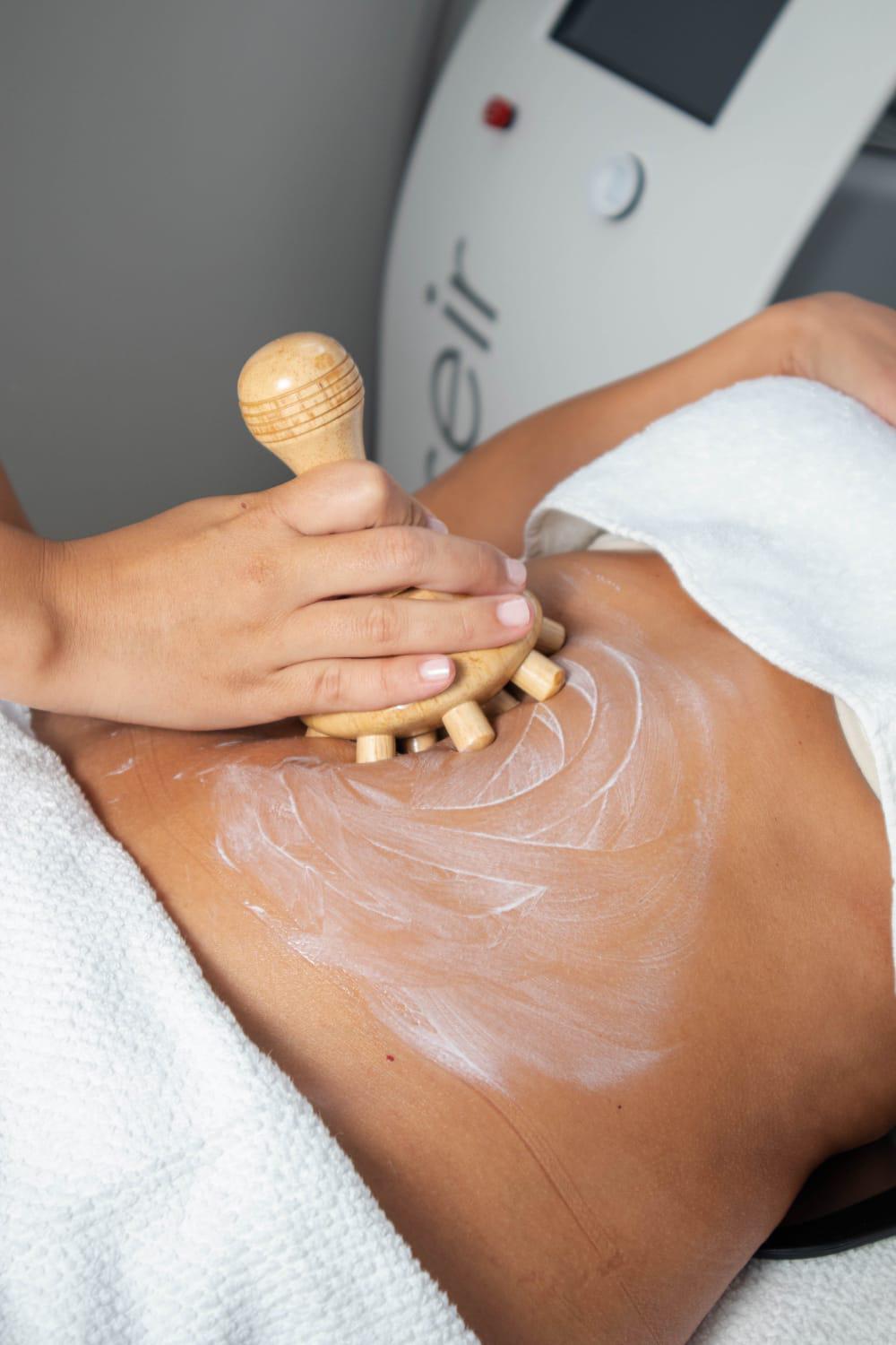 Tras una valoración corporal personalizada, se trabaja la zona mediante movimientos específicos con herramientas de madera diseñadas para activar el drenaje, romper nódulos de celulitis y favorecer la tonificación del tejido.
